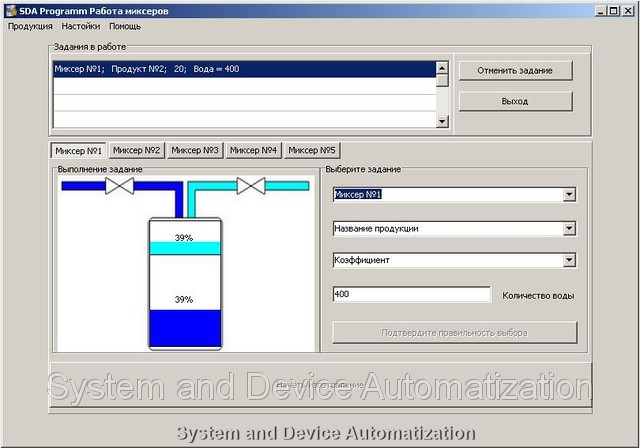 Компания ООО "Системы и устройства автоматизации" разработала программу для обеспечения работы и выполнения процесса смешивания жидкостей в миксерах.